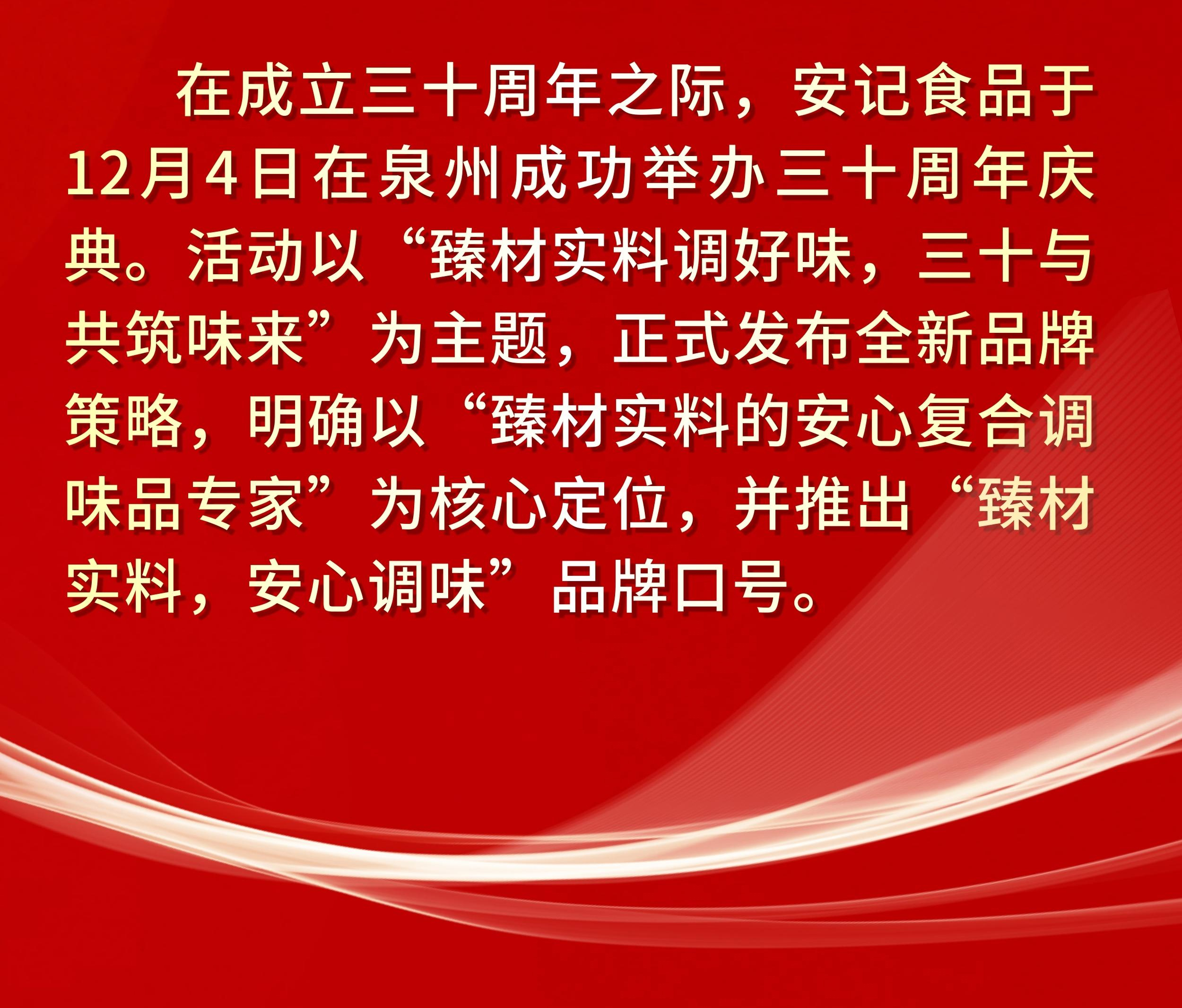| “臻材實(shí)料調(diào)好味,三十與共筑味來”| 安記食品成立30周年暨上市十周年慶典圓滿成功 |